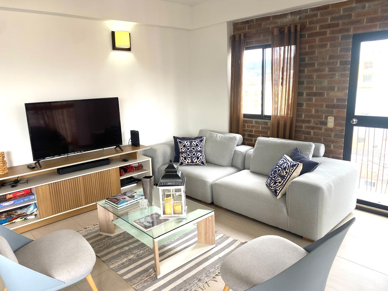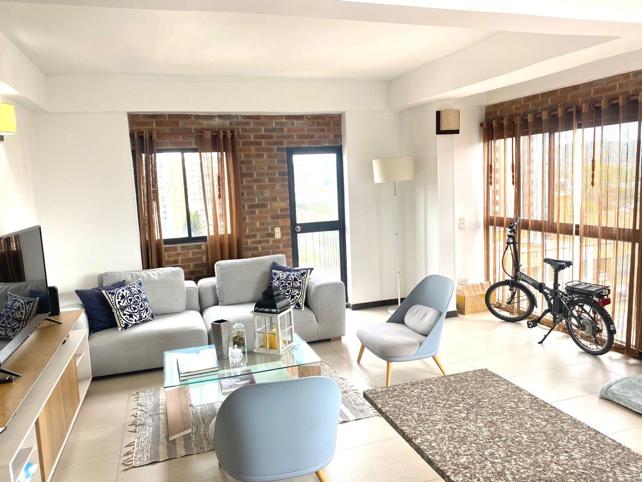 Apartamento moderno en piso 12 con luz natural y vista única, área 77mtrs 2 + 3.32 de balcones, 2 habitaciones, 2 baños, sala y comedor amplio, cocina abierta, 1 zona de lavado, 2 balcones, 1 parqueadero, 1 depósito todo en la misma matrícula inmobiliaria.